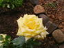 Hybrid Tea. Deep yellow. Mild, fruity fragrance. Large, double (17-25 petals) bloom form. Blooms in flushes throughout the season. USDA zone 6a through 10b. Height of 5' to 6' 7" (150 to 200 cm). Width of 4' (120 cm). Mathias Tantau, Jr. (1912 - 2006) (1971).