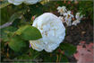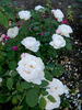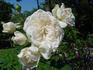 Shrub. English Rose Collection. White or white blend. Flowers white, with a tendency to revert to pink. Moderate, sweet fragrance. Medium, very full (41+ petals), cluster-flowered, in small clusters, cupped, old-fashioned, rounded bloom form. Prolific, blooms in flushes throughout the season. USDA zone 5b through 10b. Height of up to 4' (up to 120 cm). Width of up to 4' (up to 120 cm). David C. H. Austin (1926-2018) (1988).