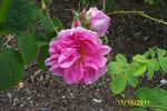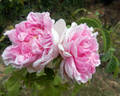 Damask, Portland. Pink or light pink. Fragrant stamens. Strong fragrance. Large, double (17-25 petals) bloom form. Occasional repeat later in the season. Height: 4' to 5' (120 to 150cm). Width: 3' to 4' (90 to 120cm). Unknown (1633).