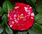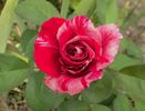 Floribunda.  Red, white stripes.  Flowers striped burgandy and white, or cream, or red, opening quickly.  Mild to strong, damask, rose, spice, opinions vary fragrance.  Large, double (17-25 petals), cluster-flowered, in small clusters bloom form.  Blooms in flushes throughout the season.  USDA zone 6b through 9b (default).