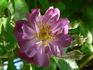 Climber, Hybrid Multiflora, Polyantha, Cl., Rambler.  Violet, white streaks, stripes, flecks, white center, yellow stamens.  Moderate, green apple, lily of the valley fragrance.  Small to medium, semi-double (9-16 petals), cluster-flowered, in large clusters, cupped-to-flat bloom form.  Once-blooming spring or summer.  USDA zone 4b and warmer.  Height of 10' to 20' (305 to 610 cm).  Width of up to 12' (up to 365 cm). J. C. Schmidt / Blumenschmidt (1909).