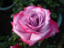Hybrid Tea. Lavender, red edges. Moderate, rose fragrance. Large, double (17-25 petals), borne mostly solitary, cluster-flowered, in small clusters, high-centered bloom form. Blooms in flushes throughout the season. USDA zone 7b and warmer. Height of 3' to 4' (90 to 120 cm). Width of 2' to 3' (60 to 90 cm). O.L. Weeks (1912-2002) (1975).