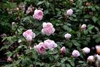 Shrub.   (Series: English Rose Collection)  Light pink.  Strong, musk, myrrh, old rose fragrance.  Large, very full (41+ petals), in small clusters bloom form.  Spring or summer flush with scattered later bloom.  USDA zone 5b through 9b.