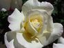 Floribunda.  White, light pink edges, yellow undertones.  Strong fragrance.  Large, very full (41+ petals), in small clusters, cupped-to-flat, old-fashioned bloom form.  Prolific, blooms in flushes throughout the season.  USDA zone 5b through 9b.