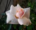 Hybrid Tea.  Cream, pink edges.  Flowers pale yellow to white, often tinged with light pink, Nasturtium fragrance.  Mild fragrance.  Very large, full (26-40 petals), high-centered bloom form.  Blooms in flushes throughout the season.  USDA zone 7b and warmer.  Height of 3' to 6' 7" (90 to 200 cm).  Width of 2' (60 cm). Herbert C. Swim (1958).