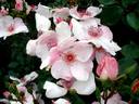 Floribunda, Shrub.  Pink, darker edges.  None to mild fragrance.  Medium, full (26-40 petals), cluster-flowered, in large clusters bloom form.  Prolific, blooms in flushes throughout the season.  USDA zone 4b through 9b.  Height of 2' to 5' (60 to 150 cm).  Width of 4' to 6' (120 to 185 cm). Meilland (Paolino) (1920-1987) (1981), Mouchotte (1981).