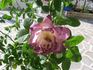 Floribunda. Russet. Rust red & smoky lavender. Mild, apple, opinions vary fragrance. Medium to large, double (17-25 petals), in small clusters bloom form. Blooms in flushes throughout the season. USDA zone 6b through 9b (default). Height: 47" to 5¼' (120 to 160cm). Width: 47" to 5¼' (120 to 160cm). Tom Carruth (2006).