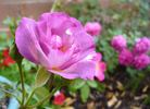 Floribunda, Shrub. Purple, lighter reverse. Strong, clove, spice fragrance. Medium, double (17-25 petals), in small clusters bloom form. Blooms in flushes throughout the season. USDA zone 5b through 9b. Height: 30" to 3' (75 to 90cm). Width: 18" to 2' (45 to 60cm). Tom Carruth (2004).