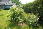 Found Rose, Hybrid Musk. White, yellow stamens. Strong fragrance. Small, single to semi-double, in large clusters bloom form. Continuous (perpetual) bloom throughout the season. USDA zone 4b through 10b. Height of 7' to 10' (215 to 305 cm). Width of 6' to 12' (185 to 365 cm). Mike Darlow (1993).