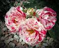 Floribunda. Red, white stripes. Flowers striped burgandy and white, or cream, or red, opening quickly. Mild to strong, damask, rose, spice, opinions vary fragrance. Large, double (17-25 petals), cluster-flowered, in small clusters bloom form. Blooms in flushes throughout the season. USDA zone 6b through 9b (default). Height: 35" to 47" (90 to 120cm). Width: 31" to 43" (80 to 110cm). Tom Carruth (1996).