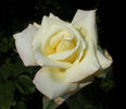 Hybrid Tea.  Cream, pink edges.  Flowers pale yellow to white, often tinged with light pink, Nasturtium fragrance.  Mild fragrance.  Very large, full (26-40 petals), high-centered bloom form.  Blooms in flushes throughout the season.  USDA zone 7b and warmer.  Height of 3' to 6' 7" (90 to 200 cm).  Width of 2' (60 cm). Herbert C. Swim (1958).