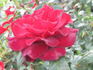 Floribunda. Crimson. Mild, tea fragrance. Medium, very double, in large clusters, rosette bloom form. Blooms in flushes throughout the season. USDA zone 5b and warmer. Height of 2' to 3' (60 to 90 cm). Gerrit De Ruiter (1962).