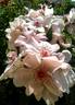 Hybrid Musk, Shrub. Deep pink, yellow shading, ages to light pink . Moderate, musk fragrance. Medium, very full (41+ petals), cluster-flowered, rosette bloom form. Blooms in flushes throughout the season. USDA zone 5b through 10b. Height of 5' to 10' (150 to 305 cm). Width of 5' to 6' (150 to 185 cm). Rev. Joseph Hardwick Pemberton (1925).