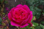 Hybrid Tea. Dark red, darker veining. Moderate fragrance. Large, full (26-40 petals), borne mostly solitary, high-centered bloom form. Blooms in flushes throughout the season. USDA zone 6b and warmer. Height of 3' to 5' 7" (90 to 170 cm). Width of 2' (60 cm). Hans Jürgen Evers (1940-2007) (1988).