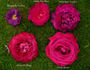 Hybrid Perpetual. Violet to dark red, red shading. Moderate fragrance. Medium, double (17-25 petals), cupped bloom form. Blooms in flushes throughout the season. USDA zone 4b and warmer. Height of 5' to 10' (150 to 305 cm). Width of 3' (90 cm). François Lacharme (1865).