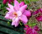 China / Bengale.  Pink.  Moderate fragrance.  Medium, semi-double to double, in small clusters, cupped-to-flat bloom form.  Blooms in flushes throughout the season.  USDA zone 6a through 10b.  Height of 3' to 10' (90 to 305 cm).  Width of 30" to 6½' (75 to 200 cm). John Parsons (1793).