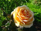Hybrid Tea.  Amber - yellow.  Strong, rose, opinions vary fragrance.  Large, full (26-40 petals), borne mostly solitary bloom form.  Blooms in flushes throughout the season.  USDA zone 7b and warmer.  Height of 28" to 6' (70 to 185 cm).  Width of 26" to 5' (65 to 150 cm). W. Kordes & Sons (1987).