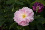 Damask.  Light pink, golden-yellow stamens, ages to white .  Strong, damask fragrance.  Semi-double (9-16 petals), cluster-flowered, in small clusters bloom form.  Once-blooming spring or summer.  USDA zone 4b through 9b.