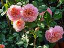 Shrub.  Apricot, light yellow undertones, ages to pink .  Bright apricot peach.  Mild fragrance.  Medium, very double, in small clusters, cupped bloom form.  Continuous (perpetual) bloom throughout the season.  USDA zone 5b through 10b.
