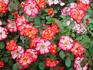 Floribunda. Red and white, red edges, lemon-yellow stamens. Strong, fruity fragrance. Medium to large, semi-double (9-16 petals), cluster-flowered, in small clusters bloom form. Prolific, blooms in flushes throughout the season. USDA zone 6b through 10b. Height of 3' to 5' (90 to 150 cm). Width of 3' to 4' (90 to 120 cm). Tom Carruth (1999).