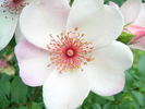 Floribunda, Shrub. Blush to white, red stamens. None / no fragrance. Medium, single (4-8 petals), in large clusters, cupped-to-flat bloom form. Prolific, continuous (perpetual) bloom throughout the season. USDA zone 6b through 9b (default). Height: 2' to 3' (60 to 90cm). Width: up to 4' (up to 120cm). Alain Meilland (1940-....) (2006).
