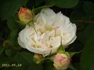 Shrub. English Rose Collection. White or white blend. Flowers white, with a tendency to revert to pink. Moderate, sweet fragrance. Medium, very full (41+ petals), cluster-flowered, in small clusters, cupped, old-fashioned, rounded bloom form. Prolific, blooms in flushes throughout the season. USDA zone 5b through 10b. Height of up to 4' (up to 120 cm). Width of up to 4' (up to 120 cm). David C. H. Austin (1926-2018) (1988).