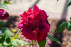 Hybrid Tea. Crimson, purple shading. Strong, clove, damask, rose fragrance. Very large, very double, borne mostly solitary, cupped bloom form. Blooms in flushes throughout the season. USDA zone 4b through 9b. Height of 30" to 6' 7" (75 to 200 cm). Width of 2' to 30" (60 to 75 cm). Wilhelm J.H. Kordes II (1891-1976) (1935).