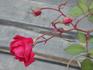 China / Bengale, Hybrid China. Scarlet. Strong, spice fragrance. Medium to large, full (26-40 petals), borne mostly solitary, in small clusters, cupped, open bloom form. Blooms in flushes throughout the season. USDA zone 6b through 10b. Height: 5' to 6'7" (150 to 200cm). Rudolf Geschwind (1829-1910) (1897).