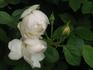 Centifolia, Damask. White or white blend. Strong fragrance. Medium, double (17-25 petals), button-eye, cupped bloom form. Once-blooming spring or summer. USDA zone 4b through 9b. Height: 4' to 6'7" (120 to 200cm). Width: 4' to 5' (120 to 150cm). Julien-ALEXANDRE Hardy (1831).