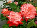 Hybrid Tea. Coral, peach shading. Strong, fruity, opinions vary fragrance. Large, full (26-40 petals), borne mostly solitary, cluster-flowered, in small clusters, exhibition, high-centered to cupped bloom form. Blooms in flushes throughout the season. USDA zone 7b and warmer. Height: 31" to 4' (80 to 120cm). Width: 2' to 28" (60 to 70cm). Gareth Fryer (1948-....) (1991).