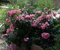 China / Bengale. Pink, ages to crimson . Mild fragrance. Medium, double (17-25 petals), cluster-flowered, cupped, flat bloom form. Blooms in flushes throughout the season. USDA zone 7b through 10b. Height: 3' to 5' (90 to 150cm). Width: 3' (90cm). Dubourg (1825).