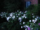 Polyantha. White, rose-pink center, red shading. Moderate fragrance. Large, very double, cluster-flowered, in small clusters bloom form. Prolific, blooms in flushes throughout the season. USDA zone 5b through 9b. Height: up to 32" (up to 80cm). Width: up to 2' (up to 60cm). Soupert & Notting (1888).