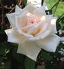 Hybrid Tea.  White.  Strong, damask, fruity, raspberry fragrance.  Very large, very full (41+ petals), borne mostly solitary, cupped bloom form.  Blooms in flushes throughout the season.