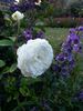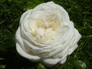 Hybrid Tea.  White.  Strong, damask, fruity, raspberry fragrance.  Very large, very full (41+ petals), borne mostly solitary, cupped bloom form.  Blooms in flushes throughout the season.