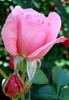 Hybrid Tea.  Light pink, darker reverse.  Mild fragrance.  Large, double (17-25 petals), borne mostly solitary, high-centered bloom form.  Blooms in flushes throughout the season.  USDA zone 5a and warmer.  Height of 30" to 3' (75 to 90 cm).  Width of 2' to 30" (60 to 75 cm). Harkness & Co. (1987).