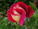 Hybrid Tea.  Crimson, yellow reverse, red veining.  Mild fragrance.  Very large, very full (41+ petals) bloom form.  Blooms in flushes throughout the season.  USDA zone 7b and warmer.  Height of 31" to 4' 11" (80 to 150 cm).   Samuel Darragh (1932-2019) McGredy IV (1963).