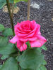 Florists Rose, Hybrid Tea.  Deep pink.  Exhibition bloom form.  Blooms in flushes throughout the season.  USDA zone 7b and warmer.  Height of up to 7' (up to 215 cm).   Hans Jürgen Evers (1940-2007) (2000).