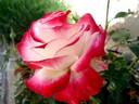 Polyantha.  White, rose-pink center, red shading.  Moderate fragrance.  Large, very double, cluster-flowered, in small clusters bloom form.  Prolific, blooms in flushes throughout the season.  USDA zone 5b through 9b.