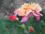 Floribunda, Shrub. Orange, yellow reverse. None to mild fragrance. Large, full (26-40 petals), cluster-flowered bloom form. Blooms in flushes throughout the season. USDA zone 3b through 7b. Height: 20" to 32" (50 to 80cm). W. Kordes & Sons (2002).