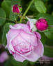 Floribunda, Hybrid Hulthemia persica. Lilac - pink, purple center. Mild to strong fragrance. Medium to large, semi-double to double, cluster-flowered, in small clusters, cupped bloom form. Blooms in flushes throughout the season. Height of up to 4' 7" (up to 140 cm). Width of up to 32" (up to 80 cm). Peter J. James (2004).