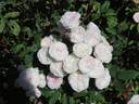 Polyantha.   (Series: Earth Kind ™)  Apricot, light pink undertones, ages to white .  Strong fragrance.  Small, very full (41+ petals), in large clusters, reflexed, scalloped bloom form.  Blooms in flushes throughout the season.  USDA zone 6b through 9b (default).