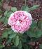 Floribunda. Red, white stripes. Flowers striped burgandy and white, or cream, or red, opening quickly. Mild to strong, damask, rose, spice, opinions vary fragrance. Large, double (17-25 petals), cluster-flowered, in small clusters bloom form. Blooms in flushes throughout the season. USDA zone 6b through 9b (default). Height: 35" to 47" (90 to 120cm). Width: 31" to 43" (80 to 110cm). Tom Carruth (1996).