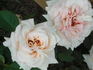 Grandiflora, Hybrid Tea. Cream, pink edges. Strong fragrance. Large, very full (41+ petals), borne mostly solitary, cluster-flowered, in small clusters, cupped bloom form. Prolific, continuous (perpetual) bloom throughout the season. USDA zone 6b through 11. Height of 2' to 47" (60 to 120 cm). Marie-Louise (Louisette) Meilland (Paolino) (1920-1987) (1987).