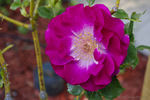 Hybrid Tea. (Series: Parfuma® Collection) Violet - red. Nearly black bud opens to violet red bloom.. Strong, apricot or peach, citrus, fruity, geranium, honey, lemon, myrrh, rose fragrance. Large, very full (41+ petals) bloom form. Blooms in flushes throughout the season. Height: up to 4½' (up to 135cm). Width: up to 4' (up to 120cm). Tim Hermann Kordes (2003).