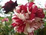 Found Rose, Bourbon, China / Bengale, Miscellaneous OGR.  Carmine-red and purple.  Strong, spice fragrance.  Large, full (26-40 petals), cluster-flowered bloom form.  Blooms in flushes throughout the season.  USDA zone 5b through 10b.