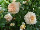 Shrub.  English Rose Collection.  Apricot or apricot blend.  Fruity fragrance.  Very double bloom form.  Blooms in flushes throughout the season.  USDA zone 5b through 10b.  Height of 7' to 14' (215 to 425 cm).  Width of 5' to 6' (150 to 185 cm). David C. H. Austin (1926-2018) (1982).