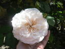Large-Flowered Climber. Cream to white. Moderate fragrance. Large, very full (41+ petals), flat, old-fashioned, rosette bloom form. Blooms in flushes throughout the season. USDA zone 6b through 9b (default). Height of 8' to 13' (245 to 395 cm). Width of up to 5' (up to 150 cm). Unknown (1940).