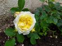 Shrub. English Rose Collection. Yellow, lighter outer petals. Mild, spice, tea fragrance. Medium, very full (41+ petals), borne mostly solitary, in small clusters, cupped-to-flat, rosette bloom form. Blooms in flushes throughout the season. USDA zone 5b through 10b. Height of 42" to 10' (105 to 305 cm). Width of 5' (150 cm). David C. H. Austin (1926-2018) (1991).