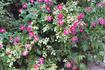 Floribunda, Hybrid Hulthemia persica. Lilac - pink, purple center. Mild to strong fragrance. Medium to large, semi-double to double, cluster-flowered, in small clusters, cupped bloom form. Blooms in flushes throughout the season. Height of up to 4' 7" (up to 140 cm). Width of up to 32" (up to 80 cm). Peter J. James (2004).