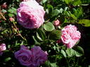 Floribunda, Hybrid Hulthemia persica. Lilac - pink, purple center. Mild to strong fragrance. Medium to large, semi-double to double, cluster-flowered, in small clusters, cupped bloom form. Blooms in flushes throughout the season. Height of up to 4' 7" (up to 140 cm). Width of up to 32" (up to 80 cm). Peter J. James (2004).